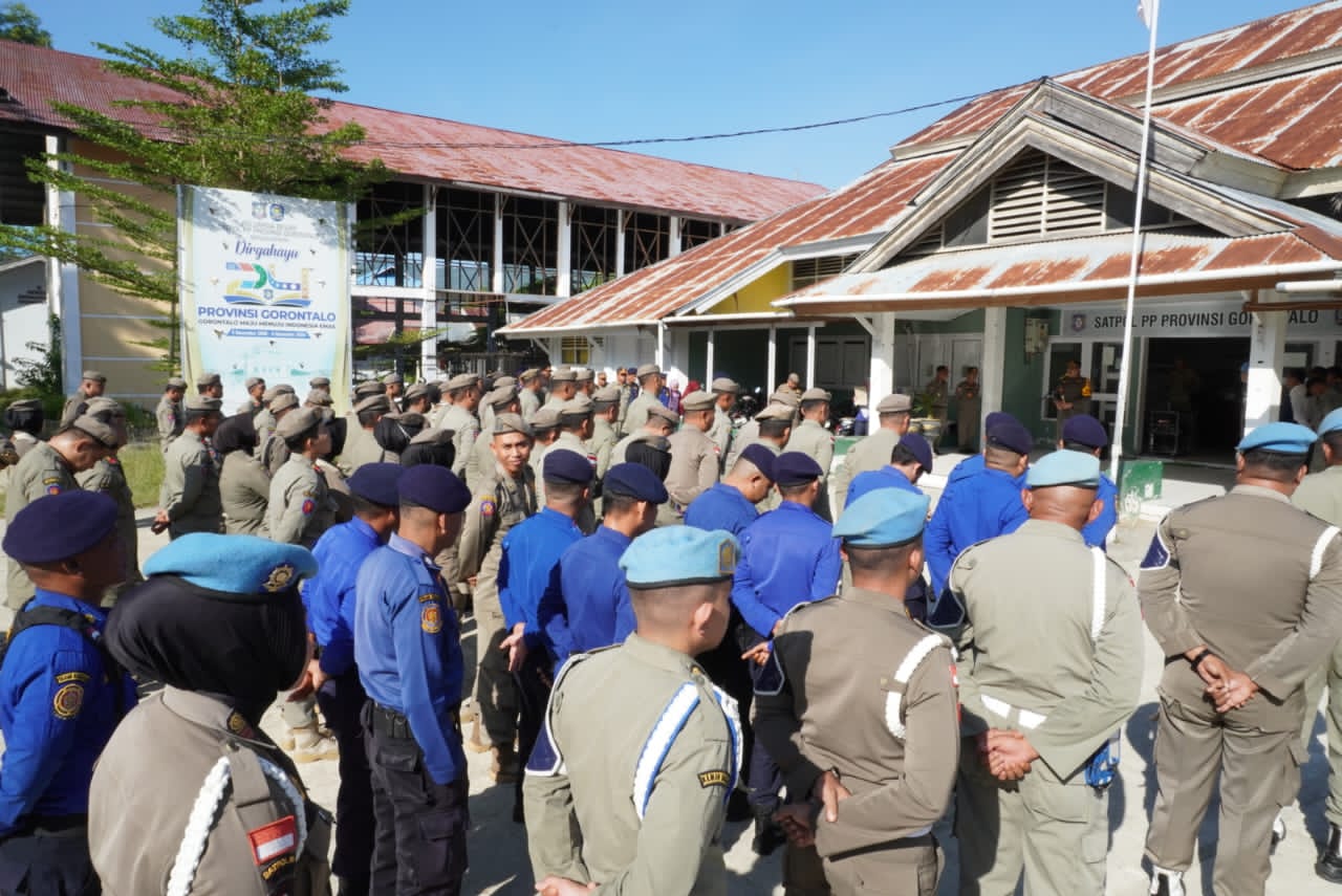 Pelaksanaan apel pagi dilingkungan Satpol PP Provinsi Gorontalo.