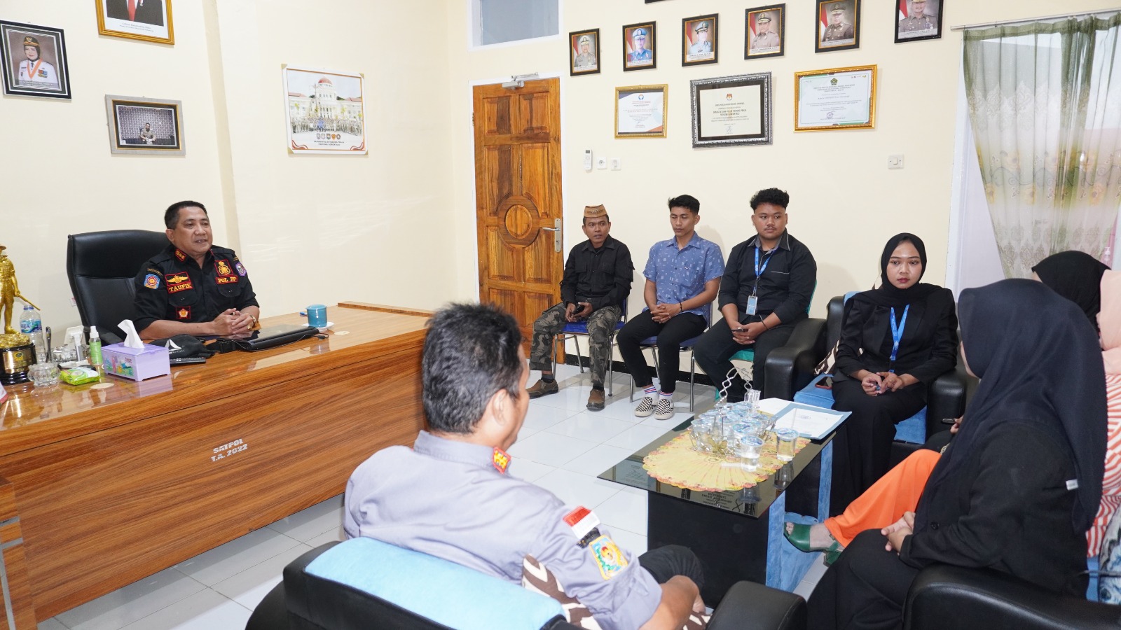 KOTA GORONTALO — Kepala Satuan Polisi Pamong Praja (Kasatpol PP) Provinsi Gorontalo, Taufik Sidiki, memberikan apresiasi kepada Lima mahasiswa Universitas Negeri Gorontalo (UNG) yang telah menyelesaikan program magang di Kantor Satpol PP Provinsi Gorontalo. Hari ini merupakan hari terakhir pelaksanaan magang sekaligus penarikan mahasiswa oleh pihak kampus.