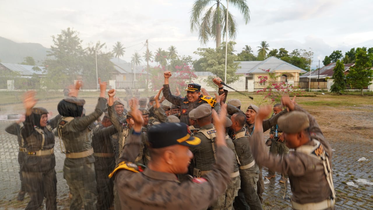 Kasatpol PP Provinsi Gorontalo, Taufik Sidiki, menyampaikan apresiasinya atas disiplin dan ketekunan seluruh peserta Diklat. “Selama pendidikan, kegiatan mereka sudah diatur dari pagi, siang, sore sampai dengan malam,” ungkapnya, menegaskan bahwa pola latihan yang ketat merupakan bagian dari pembentukan karakter dan profesionalisme anggota Satpol PP.