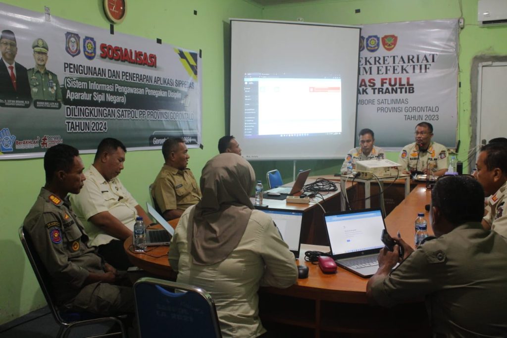 KOTA GORONTALO – Satuan Polisi Pamong Praja (Satpol PP) Provinsi Gorontalo menggelar kegiatan sosialisasi penggunaan Aplikasi Sippedas (Sistem Informasi Pengawasan Penegakan Disiplin Aparatur Sipil Negara) dengan menghadirkan Badan Kepegawaian Daerah (BKD) Provinsi Gorontalo, Selasa (25/6/2024). Kegiatan sosialisasi dilaksanakan di ruang rapat Kantor Satpol PP Provinsi Gorontalo dan dibuka oleh Kasatpol PP Provinsi Gorontalo, Masran Rauf. […]