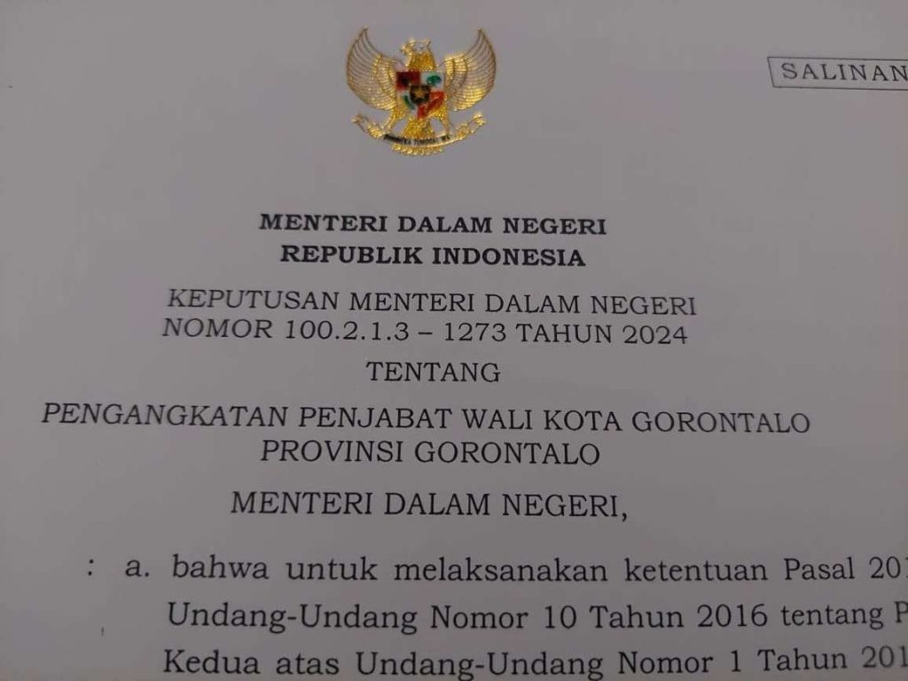 KOTA GORONTALO – Menteri Dalam Negeri (Mendagri) telah menunjuk Sekretaris Daerah (Sekda) Kota Gorontalo, Bapak Ismail Madjid sebagai Penjabat (Pj.) Walikota Gorontalo. Penunjukan ini berdasarkan surat Keputusan Mendagri yang diterima Pemerintah Provinsi Gorontalo, Nomor 100.2.1.3 – 1273 Tahun 2024. Penunjukan ini disambut baik oleh Pemerintah Provinsi Gorontalo khususnya Satuan Polisi Pamong Praja (Satpol PP) Provinsi […]