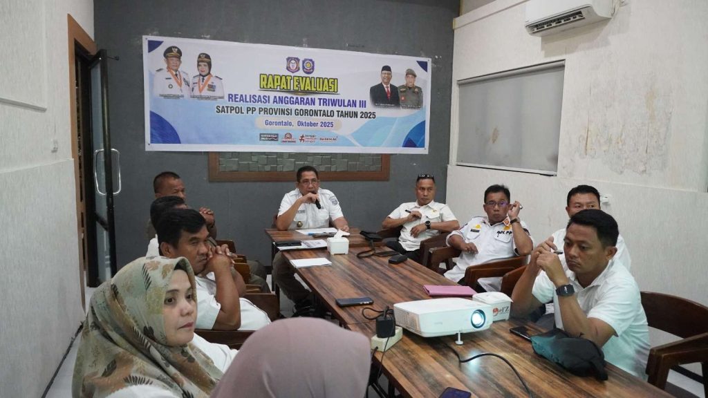 KOTA GORONTALO – Satuan Polisi Pamong Praja (Satpol PP) Provinsi Gorontalo melaksanakan rapat evaluasi realisasi anggaran Triwulan III Tahun Anggaran 2025. Kegiatan ini digelar di ruang rapat Hungrypedia X El’Z Coffee Shop, Rabu (15/10/2025). Rapat dipimpin langsung oleh Kepala Satpol PP Provinsi Gorontalo, Taufik El Hakim Sidiki dan dihadiri oleh para pejabat struktural serta jajaran […]