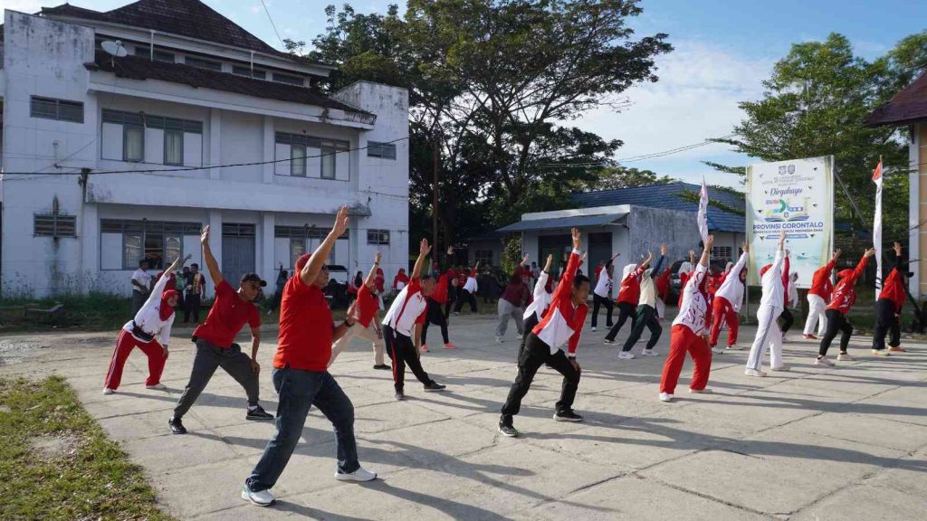 KOTA GORONTALO – Dalam rangka menyambut dan memeriahkan Hari Ulang Tahun ke-80 Kemerdekaan Republik Indonesia, Satuan Polisi Pamong Praja (Satpol PP) Provinsi Gorontalo melaksanakan kegiatan senam bersama dan kerja bakti di lingkungan kantor, Jumat pagi (8/8). Kegiatan diawali dengan senam bersama yang diikuti oleh seluruh anggota Satpol PP dan Dharma Wanita Persatuan (DWP) Satpol PP […]